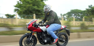 The Thruxton 400 has been updated with a downsized 350 cc engine, similar to the Bajaj Dominar 400.